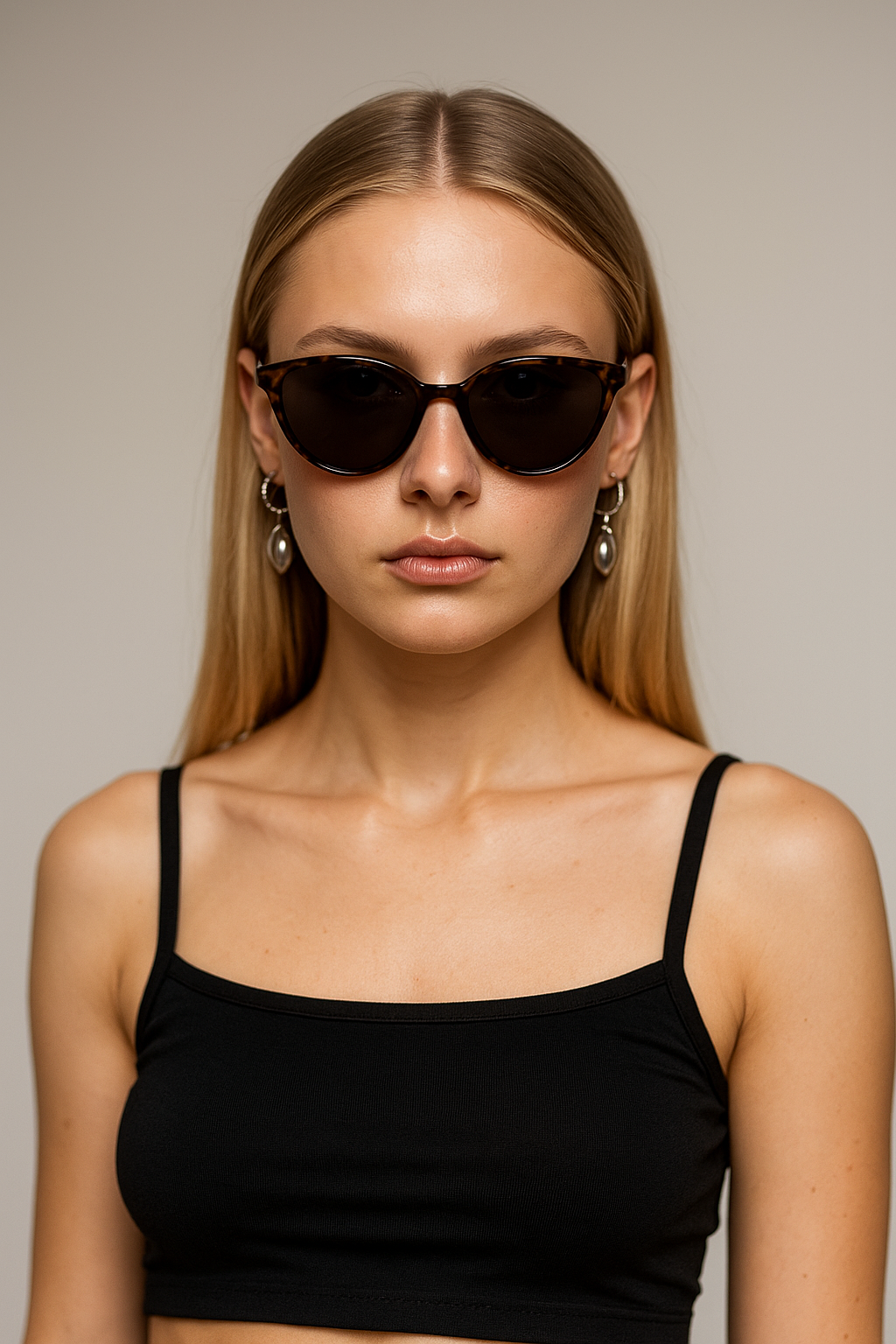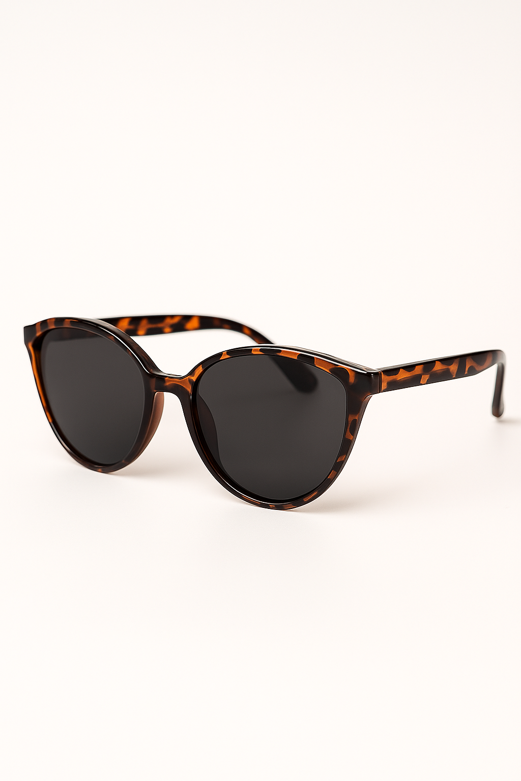 Leopar desenli cat-eye çerçeve, retro-modern bir görünüm sağlar.