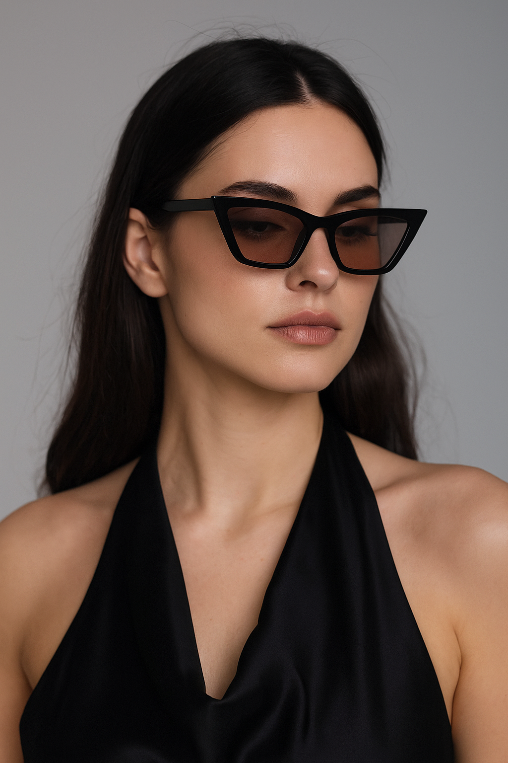 Köşeli cat-eye form, feminen ve güçlü bir görünüm kazandırır.