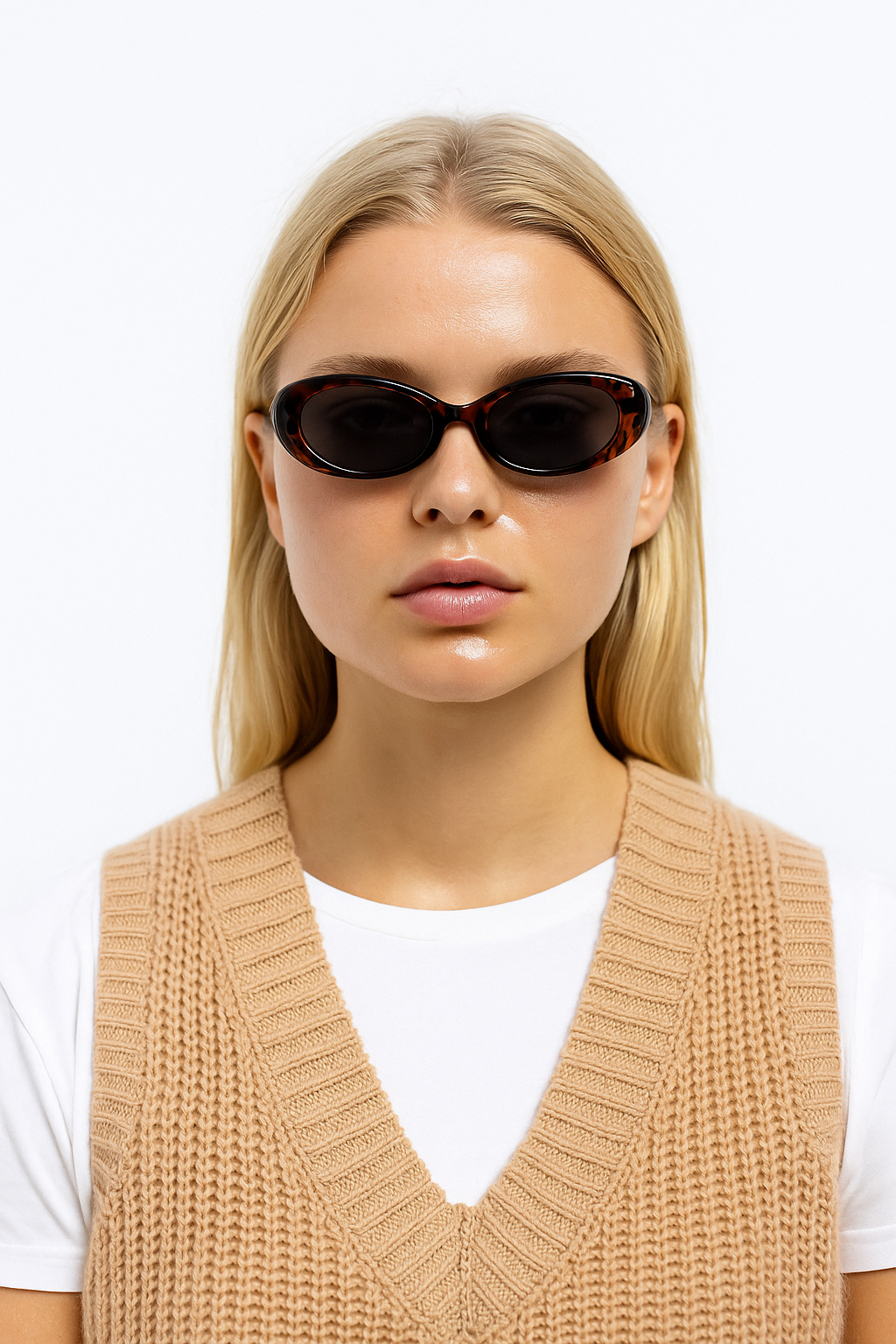 Vespera, ikonik retro oval çerçevenin leopar desenle birleştiği eşsiz bir tasarımdır. Vintage esintilerle modern minimalizmi harmanlayan bu model, hem günlük kombinlerde hem de özel davetlerde stilinizi bir adım öne taşır.